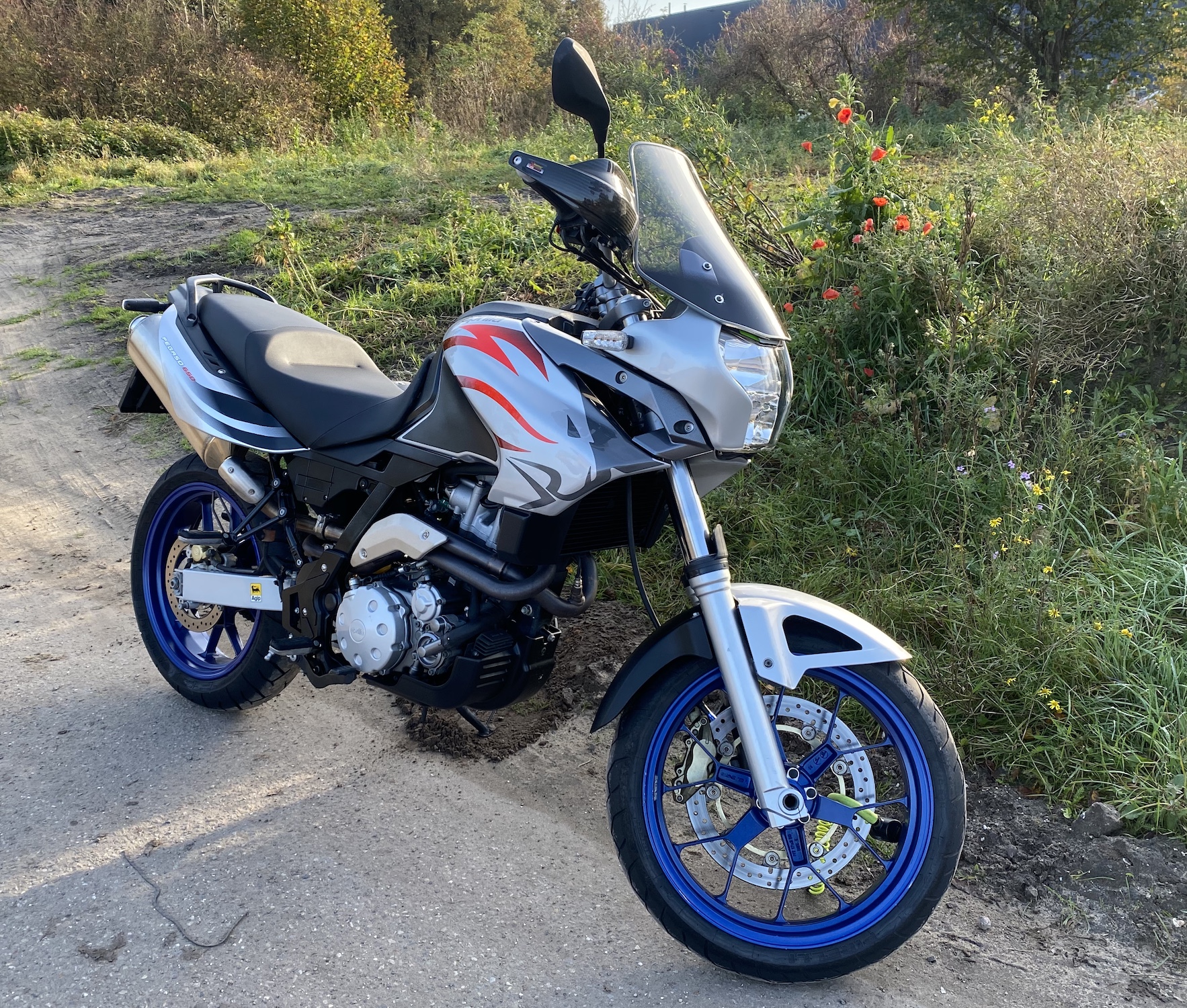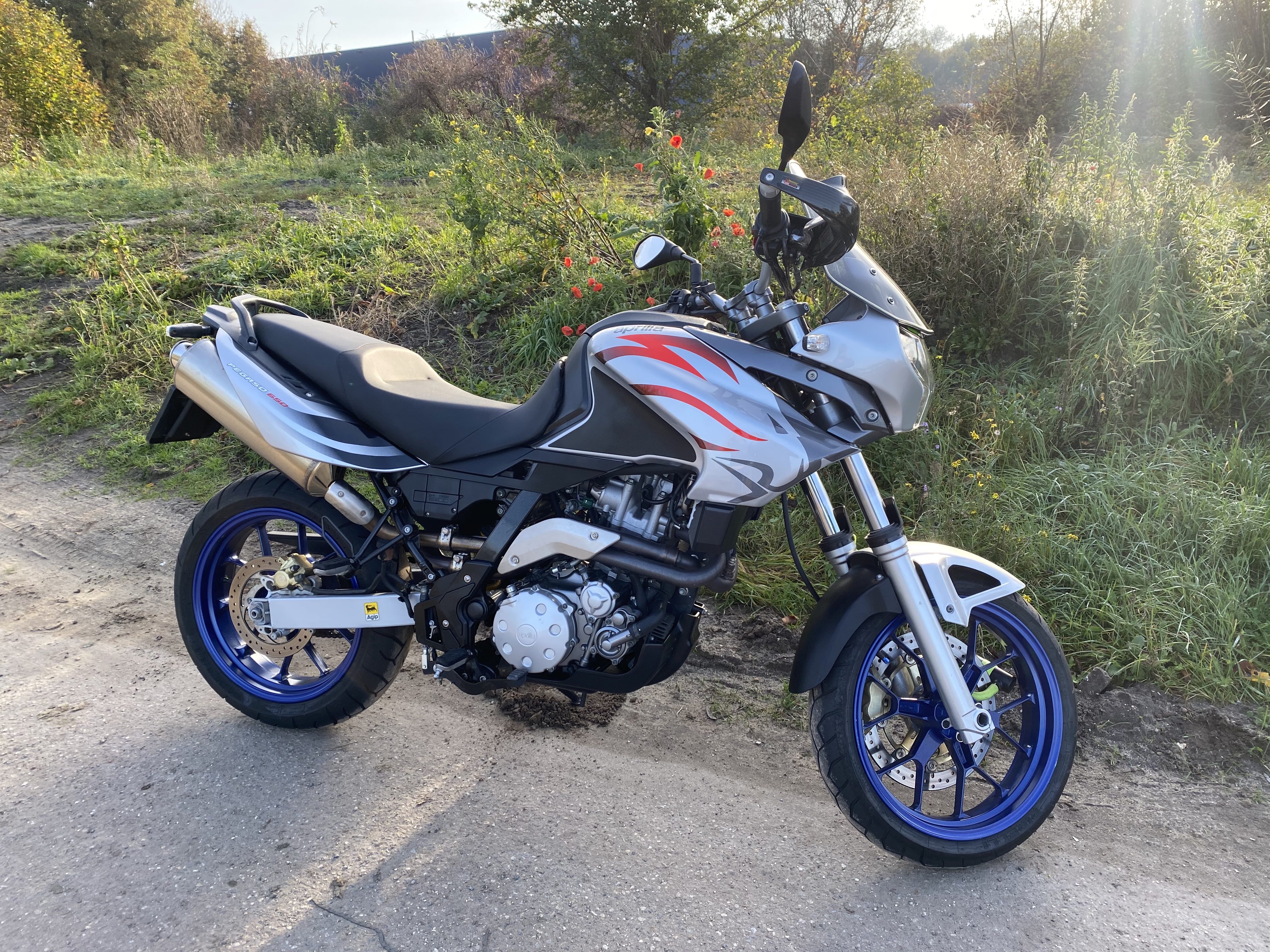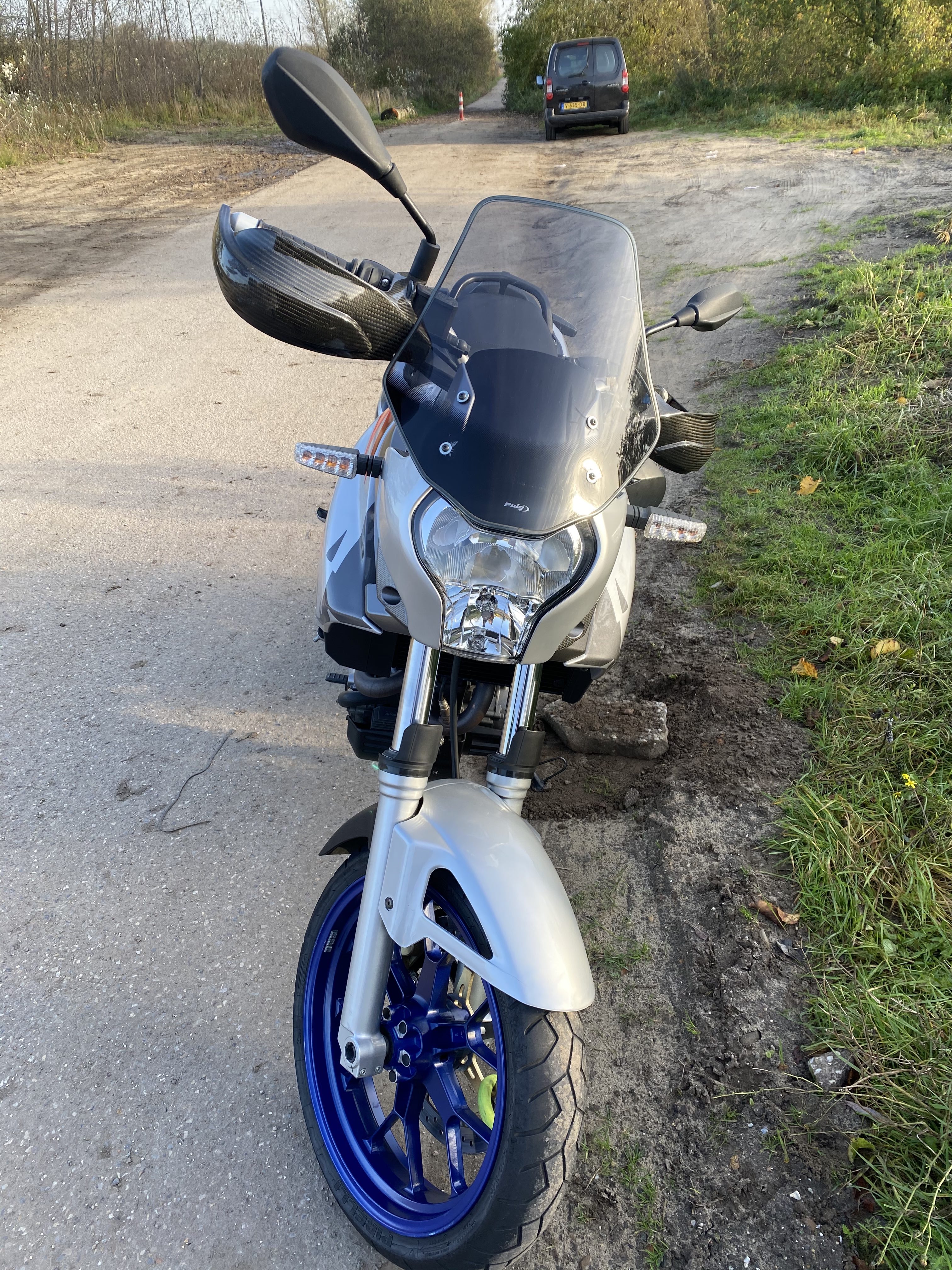 In nieuwstaat verkerende en goed onderhouden Aprilia Pegaso 650 Strada met weinig KM op de teller <10000KM. Plaatje om te zien en rijd heerlijk. Deze 1-cilinder met 660cc trekt vlot en snel op en met zijn dubbele uitlaat komt er een mooi diep geluid uit de uitlaat. Heeft tevens handvatverwarming. Ideale motorfiets om lekker een dagje mee te touren of cruisen.