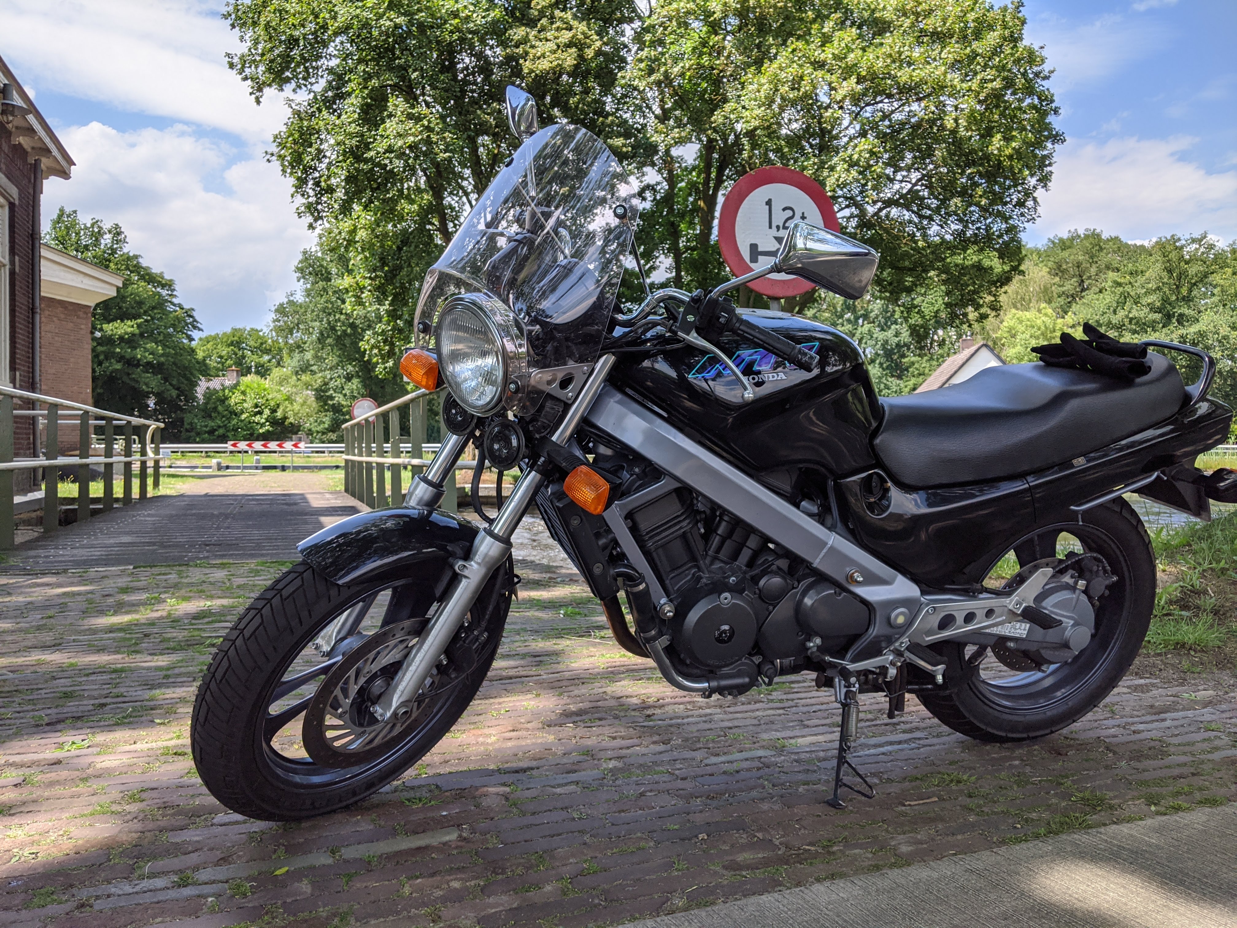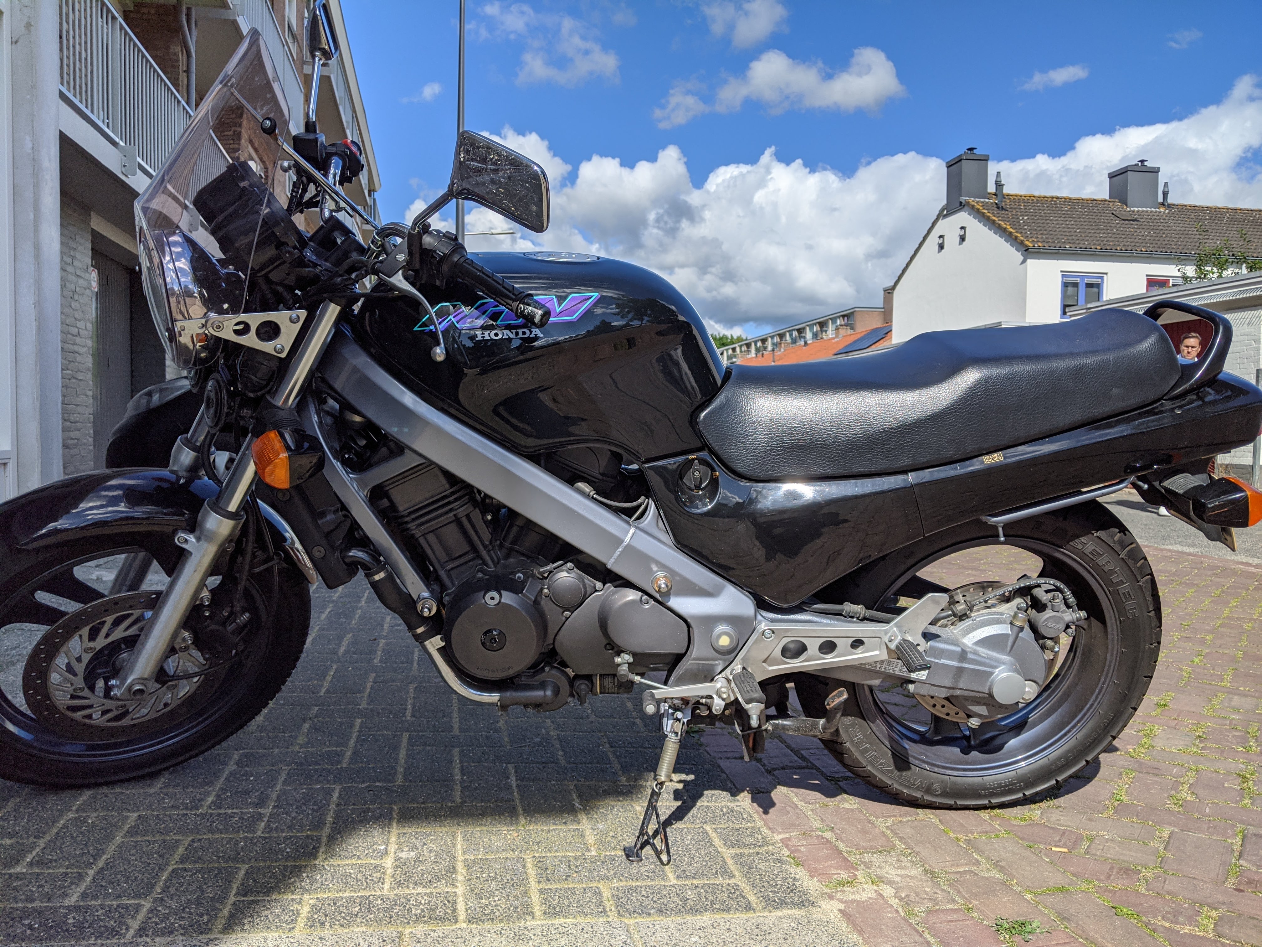 Deze 2- cillinder is een fijne motor voor zowel de beginnende en gevorderde rijder. Zoals een Honda betaamt is deze makkelijk in de omgang en levert prettige prestaties zonder dat daar huizenhoge toerentallen voor nodig zijn. De motor staat op nieuwe straatbanden met een zeer goed profiel, ook voor rijden in de regen.