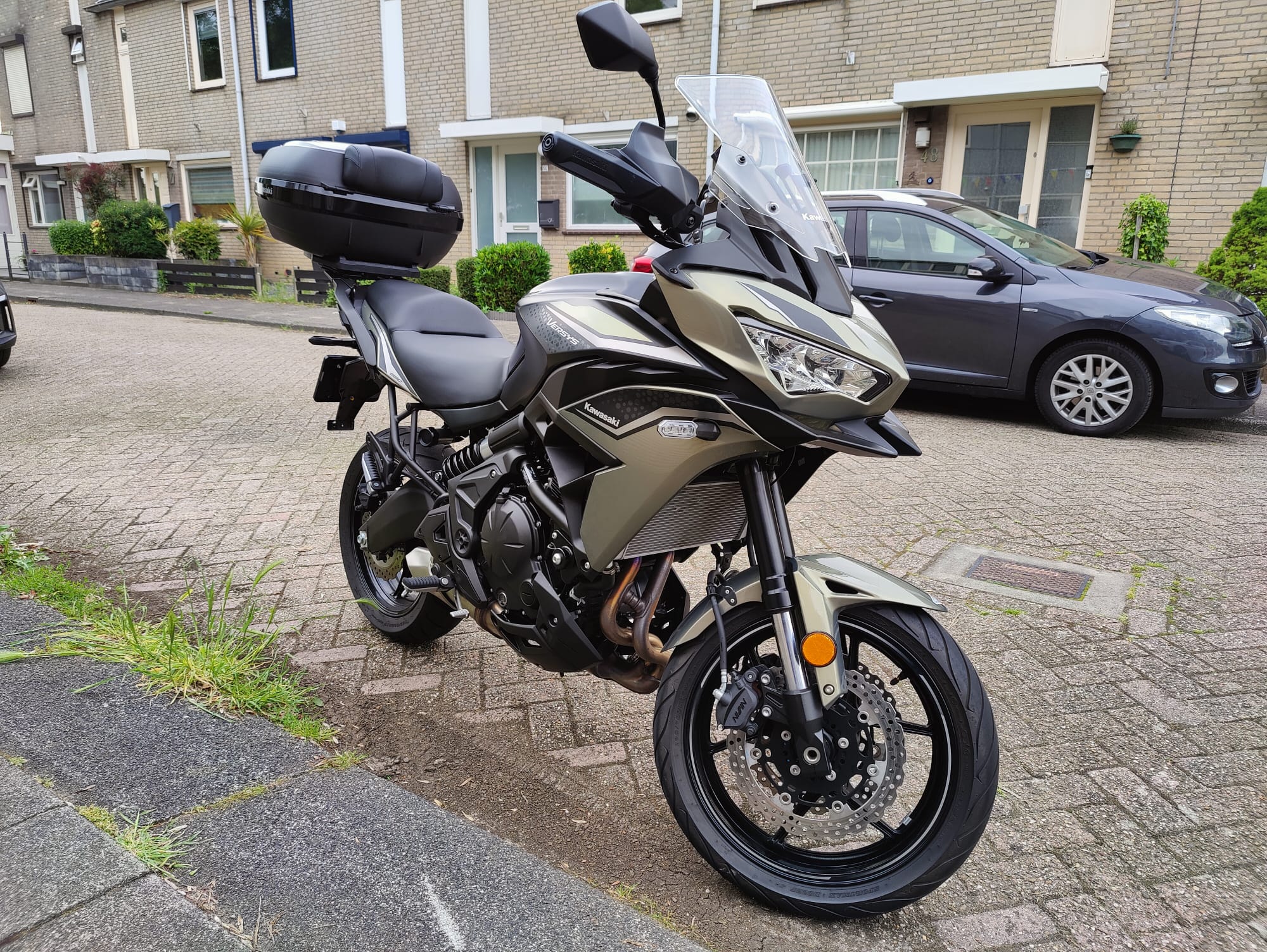 Kawasaki Versys 650 (goudkleurig) Hierbij presenteer ik de goed onderhouden en betrouwbare Kawasaki Versys 650 in een unieke goud/zwarte kleur met een lage kilometerstand. Deze motor is perfect voor zowel lange toertochten als korte ritten in de stad. Met een comfortabele rijpositie en soepel rijgedrag geniet je van elke kilometer. De motor is niet begrensd dus is een rijbewijs A nodig om er op te mogen rijden. Kenmerken: - ABS voor extra veiligheid en vertrouwen tijdens het remmen. - Kawasaki tractie controle (tegen wielspin of glijden bij acceleratie/ in bochten) - Handkappen die je handen beschermen tegen wind en regen. - Graphical interface voor een moderne en gebruiksvriendelijke bediening. - Ruime topkoffer om al je spullen veilig op te bergen tijdens je ritten. - Quidlock op het stuur (eventueel hoesje te leen voor de S24 Ultra). Onderhoud: De motor heeft recent onderhoud gehad op 8 september 2024, waarbij de olie, het oliefilter, luchtfilter en de bougies zijn vervangen. Je huurt dus een motor die technisch helemaal in orde is. Banden verkeren in een 80 a 70% staat. Deze motor is geschikt voor zowel beginnende als ervaren rijders. Klaar om jouw avontuur te beginnen? Boek nu en ontdek de vrijheid van rijden met de Kawasaki Versys 650! Bij vragen of meer foto's van de motor stuur gerust een berichtje!