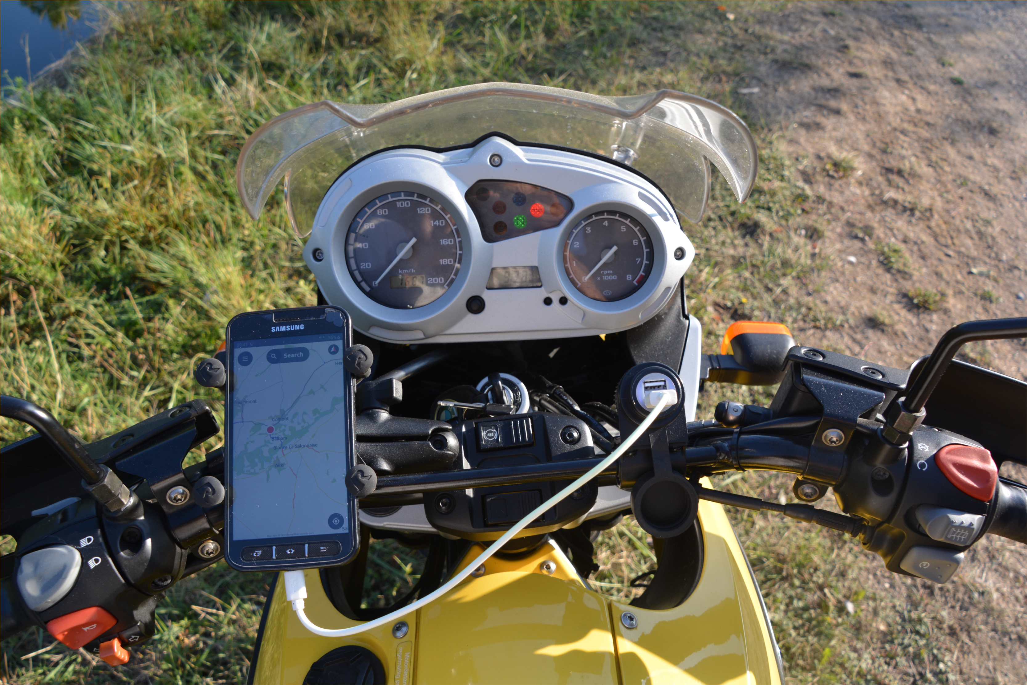 BMW F650GS Middelzware motorfiets. Geen zware toerbuffel, maar wel nog wendbaar in de stad. Met ABS, dus niet onderuit door blokkerende wielen tijdens remmen. Voorzien van top en zij koffers. Makkelijk wat meenemen. Nog meer ruimte nodig? Heb eventueel ook nog de tanktas. Helm past in topkoffer. X-grip telefoonhouder en USB lader op stuur, mooi voor routenavigatie met je telefoon.